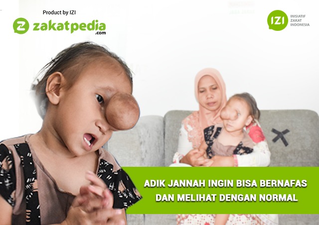 Benjolan yang tumbuh di antara hidung dan dua mata Adik Nur Jannah kini sudah membesar dan mengeras hingga ia kesulitan bernafas dan melihat.